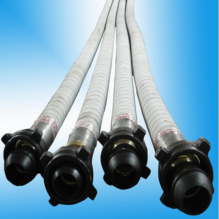 高壓鉆探膠管用途:適用于石油鉆探.泥漿輸送系統(tǒng)中鉆井立管頂部與可垂直運動的水龍頭之間作柔性連接的水龍帶.和適用于鉆井泵管線與立管之間用于調(diào)整安裝誤差.以便于連接和隔絕震動。適用于在高壓條件下大量輸送從旋轉(zhuǎn)式鉆探設(shè)備泵出且最低苯胺點位66°C的水基或油基泥漿。且能防硫化氫的侵蝕.油田井下作業(yè)輸送水.油.泥漿等高壓介質(zhì)。結(jié)構(gòu):由內(nèi)膠層或不銹鋼鎧裝內(nèi)管.碳纖維增強層.中膠層.鋼絲增強層(鋼鏈線增強層).碳纖維外膠層組成。類型:產(chǎn)品分為鋼絲增強型.鋼鏈線增強型。